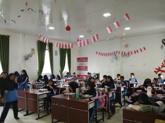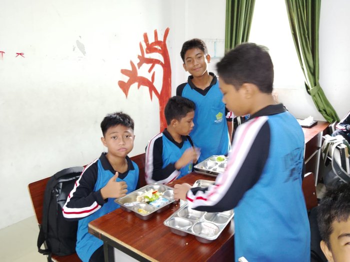 Kota Jambi � Program Makan Bergizi Gratis (MBG) kembali dilaksanakan di MTsN 2 Kota Jambi dengan menyasar siswa kelas 7H. Kegiatan berlangsung di ruang kelas setelah pelajaran pertama, dipandu oleh guru piket dan wali kelas. Suasana pembagian makanan berjalan tertib, dengan siswa menunjukkan antusiasme sejak awal.