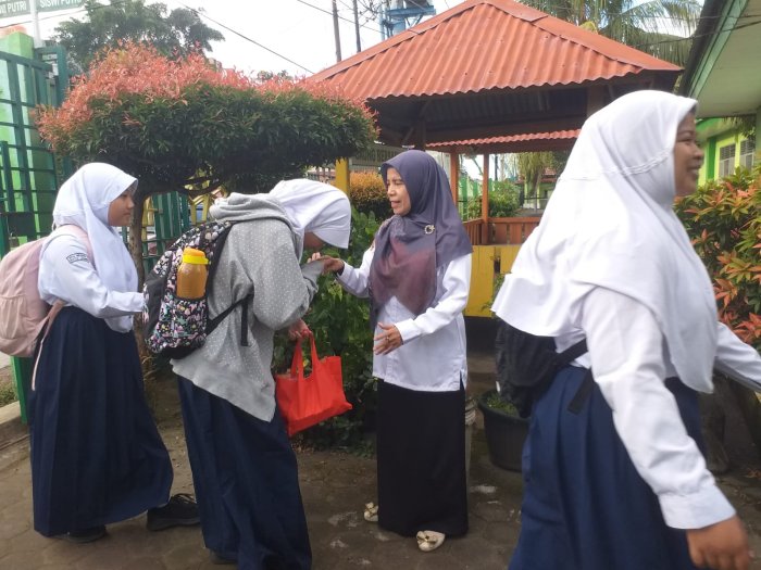 Kota Jambi (MTsN 2) - Suasana pagi di MTsN 2 Kota Jambi pada Senin, 1 September 2025, berlangsung hangat dan bersahabat. Sejak gerbang madrasah dibuka, para guru piket telah bersiap menyambut kedatangan siswa dengan senyuman ramah. Kehadiran guru di pintu masuk menjadi pemandangan yang menambah semangat pagi di lingkungan sekolah tersebut.
