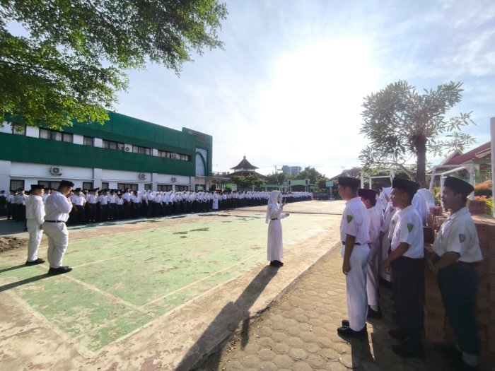 Kota Jambi (MTsN 2 Kota Jambi) — MTsN 2 Kota Jambi melaksanakan upacara bendera rutin pada Senin, 1 September 2025 di halaman madrasah. Kegiatan berlangsung khidmat dan tertib, diikuti oleh seluruh guru, tenaga kependidikan, dan peserta didik dari berbagai jenjang kelas. Petugas upacara berasal dari kelas 9F yang tampil disiplin dan kompak dalam menjalankan tugasnya.