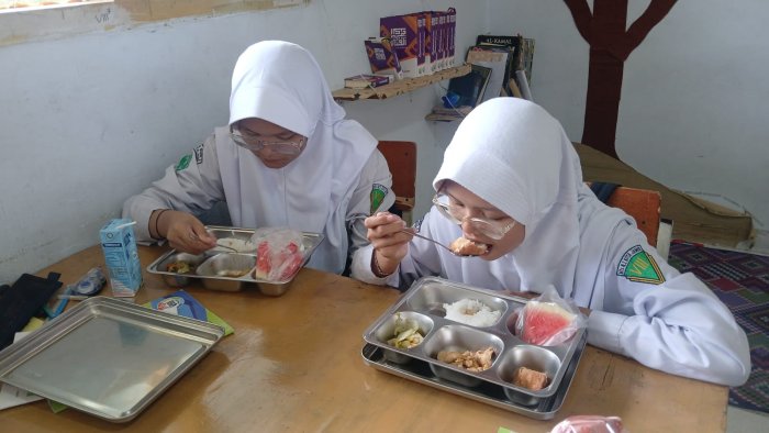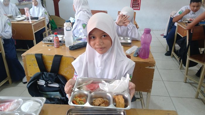 Aisyah Nur Amalia, siswi kelas 8K, menyampaikan kesan bahagianya setelah mengikuti MBG pagi ini. Ia merasa makanan yang disajikan sangat membantu menjaga semangat dan konsentrasi selama belajar. “Tumis sayurnya segar banget, semangkanya manis, dan ayam semurnya bikin nagih. Rasanya seperti sarapan di rumah, tapi lebih seru karena bareng teman-teman,” ujarnya dengan senyum ceria.