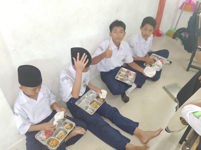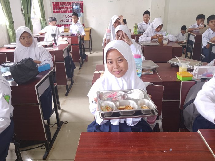 Nadya, siswi kelas 7H, menyampaikan kesan bahagianya setelah mengikuti MBG pagi ini. Ia merasa makanan yang disajikan sangat membantu menjaga semangat dan konsentrasi selama belajar. “Ayam semurnya enak banget, semangkanya segar dan tahu gorengnya renyah. Rasanya bikin tambah semangat belajar, apalagi makannya bareng teman-teman,” ujarnya dengan senyum ceria.