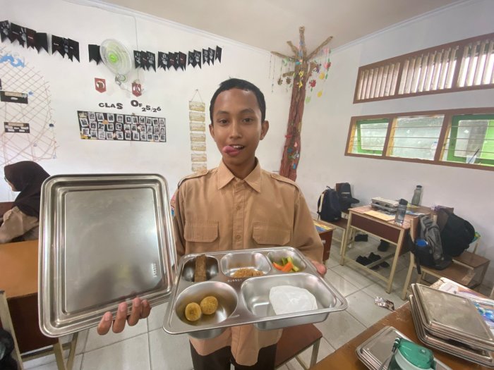 Rosyid Farros Marpaung, siswa kelas 9I, mengungkapkan rasa senangnya mengikuti MBG pagi ini. Ia merasa makanan yang disajikan sangat membantu menjaga stamina dan konsentrasi saat belajar. “Ikan gorengnya kriuk banget, tempe bacemnya enak, dan lengkengnya manis. Setelah makan, saya jadi lebih semangat ikut pelajaran,” ujarnya sambil tersenyum.