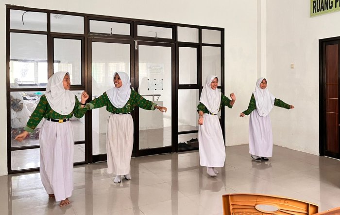 Kota Jambi (MTsN 2) - MTsN 2 Kota Jambi menggelar seleksi tim tari sebagai persiapan menghadapi Ajang Kompetisi Seni dan Olahraga Madrasah (AKSIOMA). Kegiatan ini dipandu oleh guru Seni Budaya, Ibu Titin Sumanty, S.Sn, yang telah berpengalaman dalam membimbing siswa di bidang seni tari pada Kamis (4/9/2025)