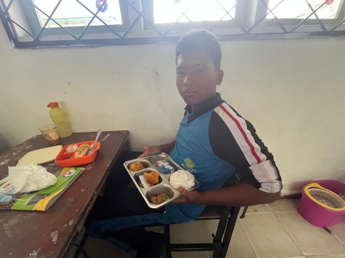 Hafid, salah satu siswa kelas 9A, mengaku sangat menikmati momen MBG bersama teman-teman. Ia merasa bahwa makan bersama di kelas membuat suasana belajar lebih akrab dan menyenangkan. “Ayam gorengnya enak banget, jeruknya segar, dan susu UHT-nya bikin tambah semangat. Rasanya kayak recharge sebelum lanjut pelajaran. Saya jadi lebih fokus dan nggak gampang capek,” tuturnya sambil tersenyum.