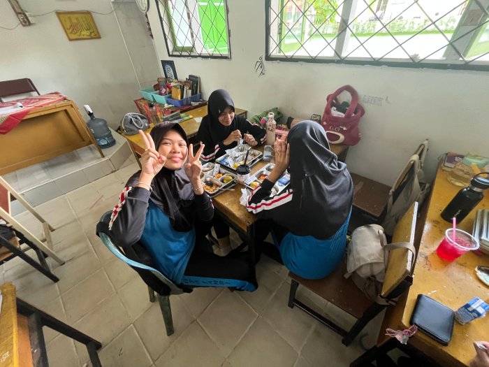 Kota Jambi (MTsN 2 Kota Jambi) — Di kelas 9A, kegiatan Makan Bergizi Gratis (MBG) bukan hanya soal makan bersama, tapi juga tentang membangun ritme belajar yang sehat dan penuh makna. Setelah istirahat pertama, siswa duduk tertib, makanan dibagikan, dan suasana kelas berubah menjadi ruang kebersamaan yang hangat. MBG menjadi titik jeda yang menyegarkan sebelum pelajaran kembali dimulai.