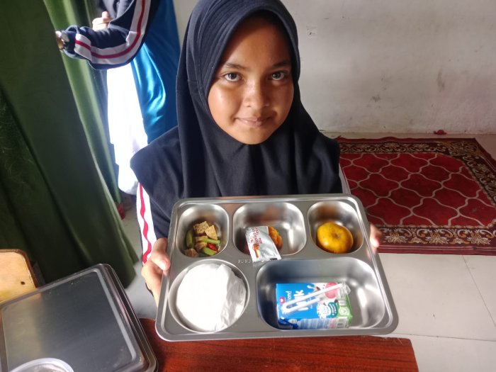 Aqila, salah satu siswi kelas 7J, mengaku sangat menikmati momen MBG bersama teman-teman. Ia merasa bahwa makan bersama di kelas membuat suasana belajar lebih akrab dan menyenangkan. “Ayam gorengnya enak banget, jeruknya segar, dan susu UHT-nya bikin tambah semangat. Rasanya kayak recharge sebelum lanjut pelajaran. Aku suka banget suasana MBG di kelas kami,” tuturnya sambil tersenyum.