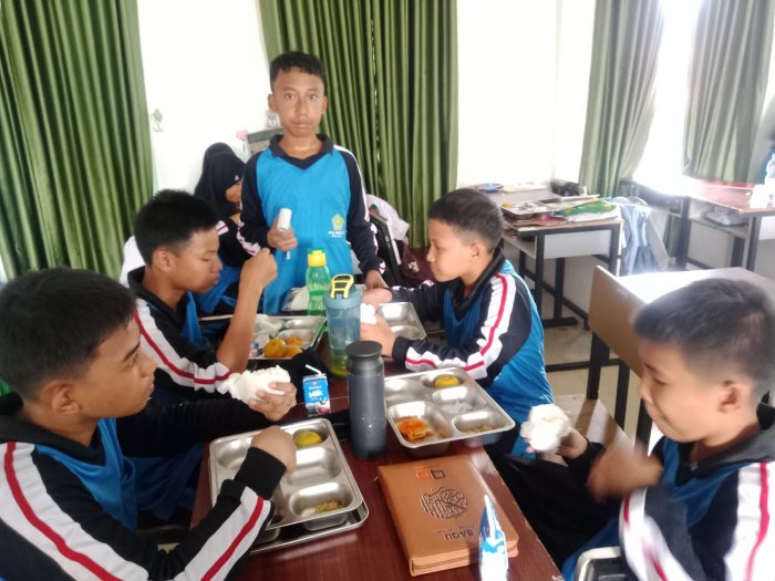 Kota Jambi (MTsN 2 Kota Jambi) — Di kelas 7J, kegiatan Makan Bergizi Gratis (MBG) bukan hanya soal makan bersama, tapi juga tentang menciptakan suasana yang penuh warna di tengah rutinitas belajar. Begitu istirahat pertama berakhir, siswa duduk rapi, makanan dibagikan, dan kelas berubah menjadi ruang kebersamaan yang ceria. MBG di kelas ini terasa seperti jeda yang menyegarkan, bukan sekadar mengenyangkan.