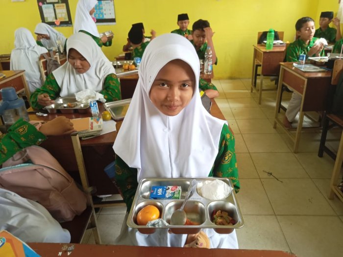 Khairani, salah satu siswi kelas 7D, mengaku sangat menikmati momen MBG bersama teman-teman. Ia merasa bahwa makan bersama di kelas membuat suasana belajar lebih akrab dan menyenangkan. “Ayam gorengnya enak banget, jeruknya segar, dan susu UHT-nya bikin tambah semangat. Rasanya kayak recharge sebelum lanjut pelajaran. Aku suka banget suasana MBG di kelas kami,” tuturnya sambil tersenyum.