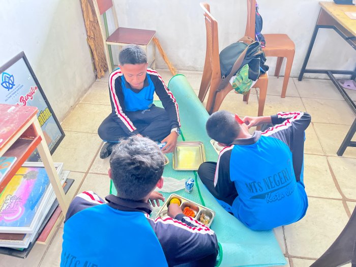 Kota Jambi (MTsN 2 Kota Jambi) — Di kelas 9E, kegiatan Makan Bergizi Gratis (MBG) bukan sekadar rutinitas, melainkan momen yang menyatukan rasa, ritme, dan refleksi. Begitu istirahat pertama berakhir, siswa duduk tertib, makanan dibagikan, dan suasana kelas berubah menjadi lebih tenang. MBG di kelas ini terasa seperti jeda yang memberi ruang untuk berpikir, bukan hanya untuk makan.