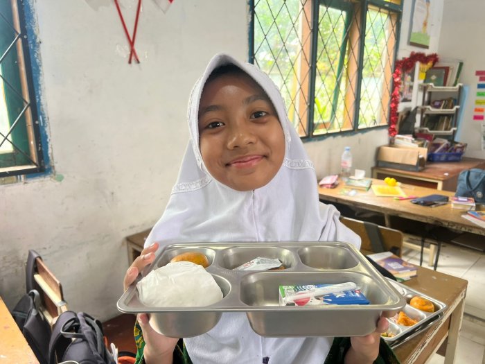 Fiqhiah, salah satu siswi kelas 8H, mengaku sangat menikmati momen MBG bersama teman-teman. Ia merasa bahwa makan bersama di kelas membuat suasana belajar lebih akrab dan menyenangkan. “Ayam gorengnya enak banget, jeruknya segar, dan susu UHT-nya bikin tambah semangat. Rasanya kayak istirahat yang bikin hati adem dan pikiran tenang,” tuturnya sambil tersenyum.