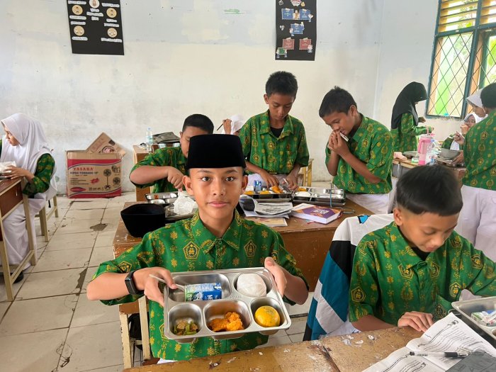 Kota Jambi (MTsN 2 Kota Jambi) — Di kelas 8H, kegiatan Makan Bergizi Gratis (MBG) bukan hanya soal mengisi perut, tapi juga soal mengisi suasana. Begitu istirahat pertama berakhir, siswa duduk tertib, makanan dibagikan, dan kelas berubah menjadi ruang kebersamaan yang hangat. MBG di kelas ini terasa seperti jeda yang menyatukan semangat, bukan sekadar rutinitas.