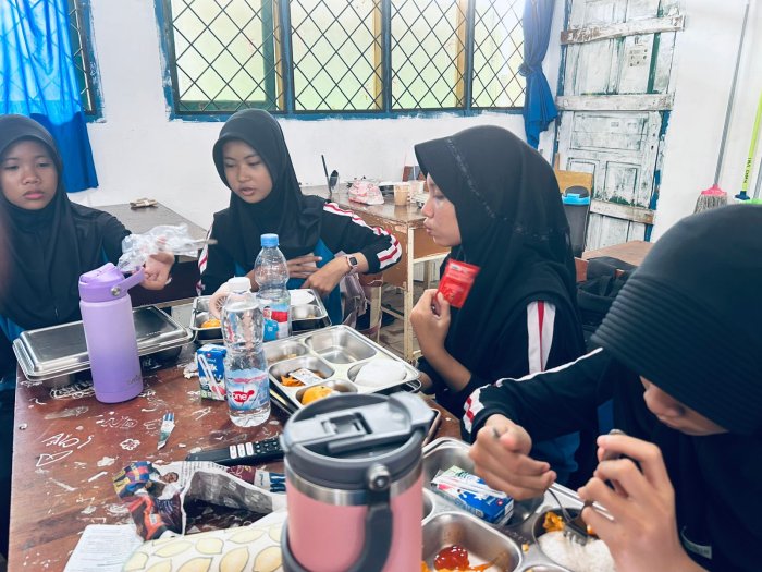 Kegiatan MBG di kelas 8I berlangsung dengan ritme yang khas. Guru dan siswa duduk bersama menikmati makanan, saling menyapa, dan menunjukkan sikap saling menghargai. Bahkan ada siswa yang membantu membagikan makanan tanpa diminta, sebagai bentuk inisiatif dan kepedulian. MBG menjadi ruang pembinaan karakter yang alami.