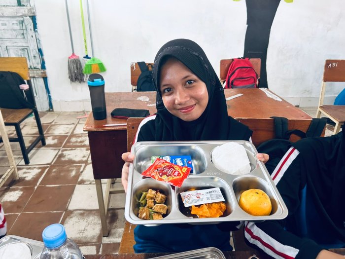 Azzahra, salah satu siswi kelas 8I, mengaku sangat menikmati momen MBG bersama teman-teman. Ia merasa bahwa makan bersama di kelas membuat suasana belajar lebih akrab dan menyenangkan. “Ayam gorengnya enak banget, jeruknya segar, dan susu UHT-nya bikin tambah semangat. Rasanya kayak recharge sebelum lanjut pelajaran. Aku suka banget suasana MBG di kelas kami,” tuturnya sambil tersenyum.