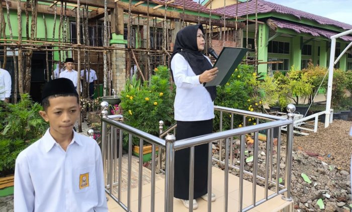 Kota Jambi (MTsN 2) - Suasana khidmat menyelimuti lapangan upacara MTsN 2 Kota Jambi pada pelaksanaan upacara bendera hari Senin, 8 September 2025. Upacara yang dipimpin oleh Ibu Elizar, S.Pd. selaku pembina upacara, berjalan dengan lancar di bawah cuaca pagi yang cerah. Seluruh peserta, mulai dari siswa, guru, hingga staf sekolah, mengikuti rangkaian acara dengan tertib.