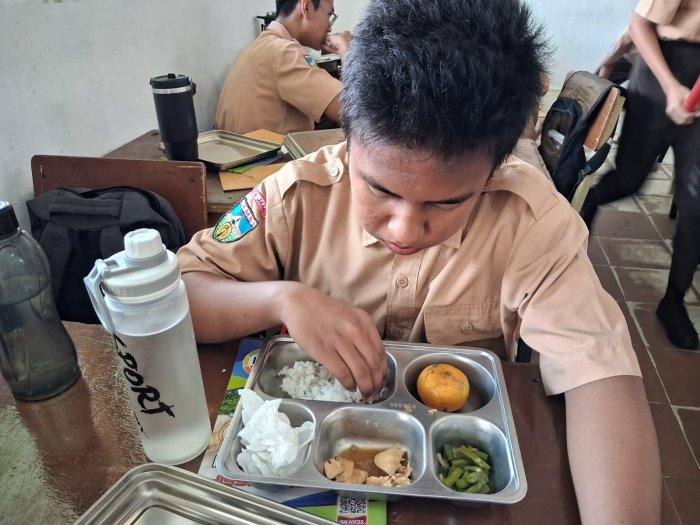 Zahid, siswa kelas 9F, mengaku sangat menikmati menu hari ini. "Ayam kecapnya empuk dan rasanya pas banget. Tumis buncisnya juga segar, nggak terlalu berminyak. Tapi yang paling aku suka itu jeruknya, seger banget buat penutup. Makan bareng teman-teman bikin suasana jadi lebih akrab," ujarnya sambil tersenyum puas.