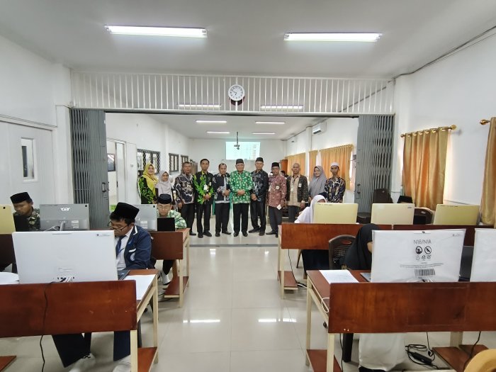 Kegiatan monitoring dimulai pukul 09.00 WIB, diawali dengan penyambutan resmi oleh Kepala MTsN 2 Kota Jambi, Bapak Drs. H. Ahmad Syukri, beserta jajaran panitia. Tim monitoring langsung meninjau ruang pelaksanaan lomba di Laboratorium Komputer 1, 2, dan 3, serta berdialog dengan panitia teknis dan peserta. Suasana madrasah tampak tertib, kondusif, dan penuh semangat kompetisi.