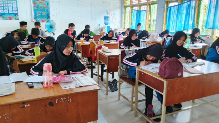 Kota Jambi (MTsN 2 Kota Jambi) — Dua kelas paralel, 8B dan 8C, menjalani kegiatan asesmen yang dilaksanakan oleh Ibu Rosmiyenti sebagai bagian dari evaluasi pembelajaran IPA. Kegiatan ini berlangsung di ruang kelas masing-masing dengan suasana yang tertib dan fokus. Asesmen bertujuan untuk mengukur pemahaman siswa terhadap materi yang telah diajarkan serta menjadi dasar perbaikan strategi pembelajaran ke depan.