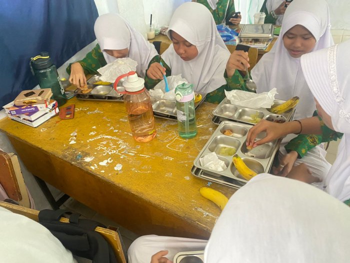 Beberapa siswa menyampaikan bahwa MBG menjadi momen yang mereka tunggu setiap pekan. “Makan bareng kayak gini bikin kita lebih dekat. Apalagi sekarang udah kelas 9, rasanya tiap momen itu berharga,” ujar salah satu siswa dari kelas 9I sambil menikmati susu UHT dingin yang dibagikan.