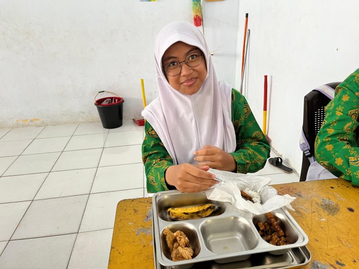Suasana makan bersama menjadi ruang refleksi ringan bagi siswa kelas 9 yang tengah bersiap menghadapi ujian dan masa transisi. Momen MBG memberi jeda dari rutinitas belajar, sekaligus memperkuat semangat dan energi untuk melanjutkan perjuangan akademik.