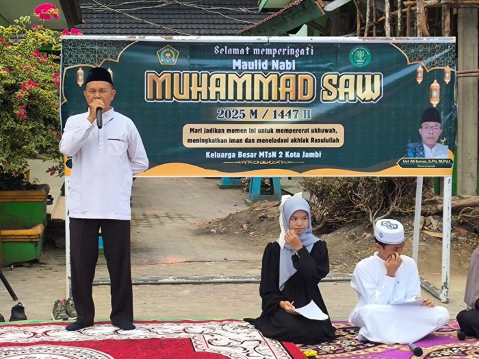 MTsN 2 Kota Jambi terus menjadikan peringatan Maulid Nabi Muhammad SAW sebagai bagian dari pembinaan spiritual dan budaya madrasah. Kegiatan hari ini menjadi bukti bahwa syiar Islam bisa dikemas dengan semangat kebersamaan, ekspresi seni, dan nilai-nilai keteladanan yang menyentuh hati. (WKS)