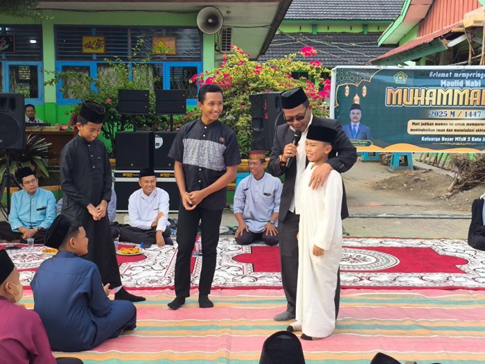 Kota Jambi (MTsN 2 Kota Jambi) — Peringatan Maulid Nabi Muhammad SAW di MTsN 2 Kota Jambi pagi ini semakin bermakna dengan kehadiran Ustadz Ali Imron, M.Pd, guru MAN 2 Kota Jambi, sebagai penceramah utama. Bertempat di lapangan madrasah, seluruh masanders, guru, dan tenaga kependidikan mengikuti rangkaian kegiatan dengan penuh antusias dan kekhusyukan.