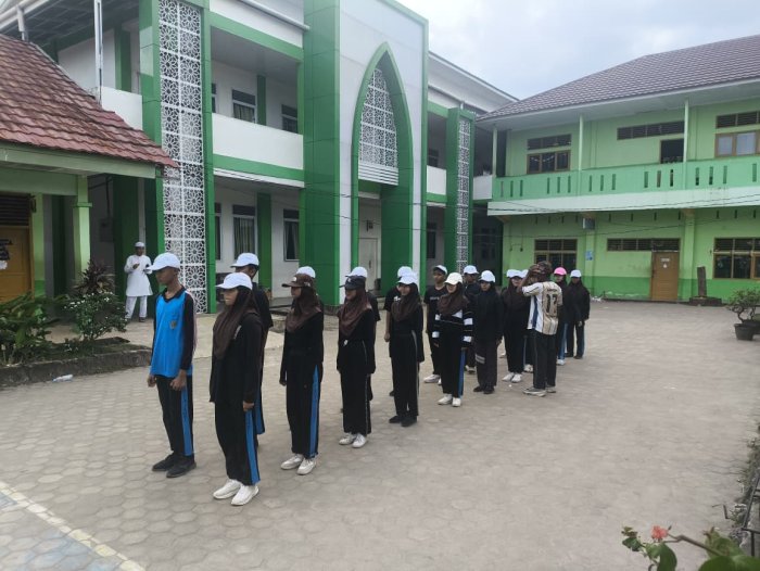 Bertempat di lapangan madrasah, latihan dimulai dengan pengaturan barisan dan pengulangan aba-aba dasar. Para anggota pramuka menunjukkan disiplin tinggi dan kekompakan dalam setiap gerakan. Pembina pramuka memberikan arahan teknis dan koreksi langsung agar formasi tampil rapi, serempak, dan penuh percaya diri.