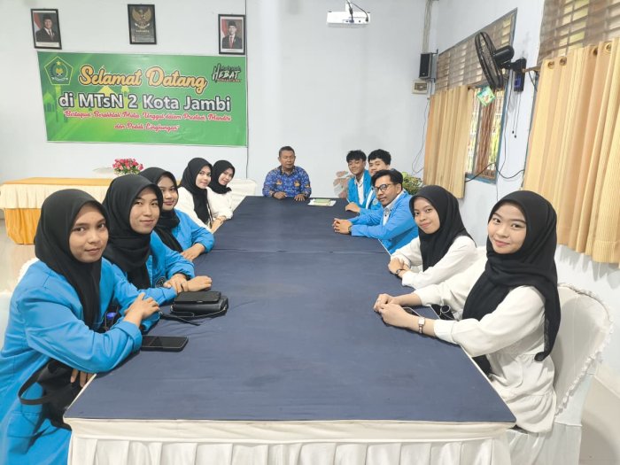 Kota Jambi (MTsN 2) - Rabu, 17 September 2025, MTsN 2 Kota Jambi menerima kedatangan mahasiswa yang akan mengikuti program Pengenalan Lingkungan Persekolahan (PLP) dari Universitas Islam Negeri (UIN) Sulthan Thaha Saifuddin Jambi. Sebanyak 12 mahasiswa dari berbagai program studi akan melaksanakan praktik lapangan di madrasah tersebut. Rinciannya, terdapat 4 mahasiswa dari Program Studi Pendidikan Agama Islam (PAI), 1 mahasiswa Tadris Matematika, 1 mahasiswa Tadris IPA, 2 mahasiswa TBI 2 mahasiswa Tadris Bahasa Arab, serta 2 mahasiswa yang akan membantu di bagian Tata Usaha (TU).