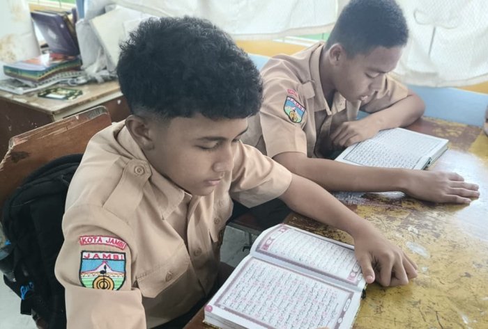 Kota Jambi (MTsN 2) - Pada Rabu pagi, 17 September 2025, suasana religius terasa di MTsN 2 Kota Jambi. Para siswa kelas 8C memulai aktivitas belajar dengan membaca Surah Al-Insyirah secara bersama-sama. Kegiatan ini berlangsung dengan tertib dan penuh kekhusyukan di ruang kelas, menciptakan suasana tenang yang mendukung semangat spiritual para siswa.