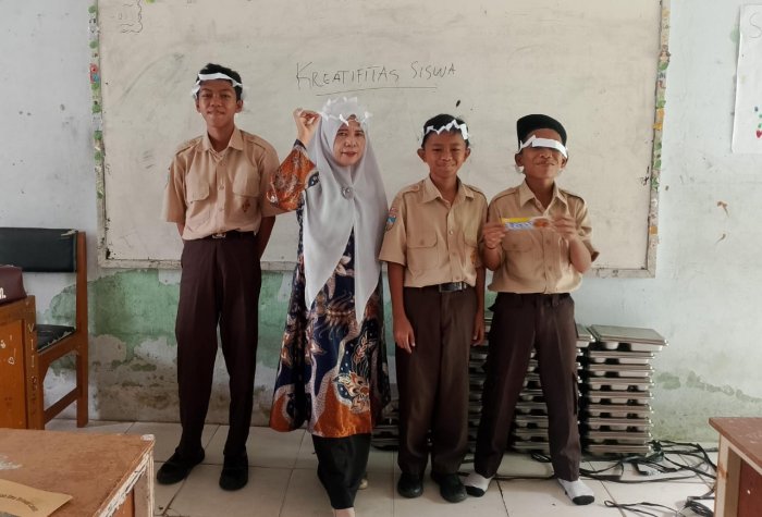 Siswa tampak antusias mengikuti setiap tahapan kegiatan, mulai dari melipat, menggunting, hingga menyusun potongan kertas menjadi mahkota yang bisa dikenakan. Beberapa siswa bahkan saling membantu dan berbagi ide desain, menciptakan suasana belajar yang kolaboratif dan menyenangkan. Kegiatan ini juga menjadi ruang pembinaan karakter, di mana siswa belajar tentang kerja sama, ketekunan, dan rasa bangga terhadap hasil karya sendiri.