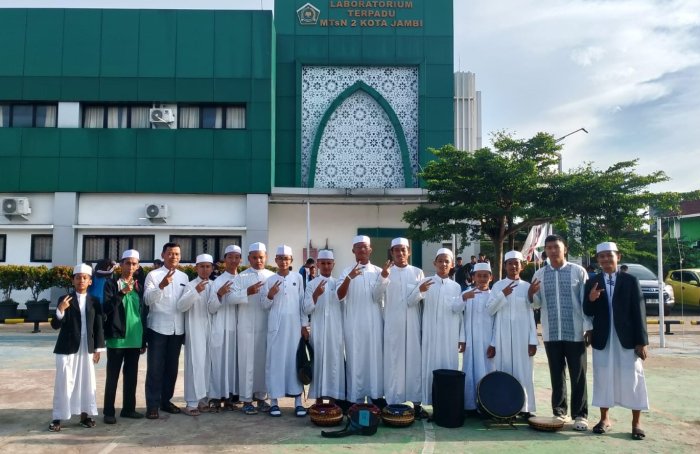 Pihak MTsN 2 Kota Jambi ikut mendukung agar tim hadroh Shohibbul Muslimin dapat tampil maksimal dan meraih prestasi membanggakan dan memperkuat eksistensi seni hadroh di kalangan pelajar. (JLM)