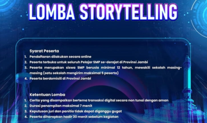 Lomba storytelling ini merupakan bagian dari rangkaian kegiatan Gentala Arasy: Gebyar Ekonomi Digital dan Literasi Jambi, yang bertujuan untuk meningkatkan literasi keuangan dan pemahaman ekonomi digital di kalangan pelajar. Tema lomba tahun ini mengangkat ikon budaya Jambi, Gentala Arasy, sebagai simbol konektivitas dan transformasi digital. Undangan diterima langsung oleh Waka Humas di ruang Humas madrasah, yang kemudian melakukan pencatatan dan koordinasi awal untuk tindak lanjut partisipasi siswa.