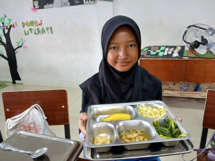 Kota Jambi (MTsN 2 Kota Jambi) — Kegiatan MBG untuk kelas 7E, 7G, 7H, dan 7I selama dua hari terakhir berlangsung dengan penuh semangat dan antusiasme tinggi dari para masanders. Pada hari Kamis, siswa menikmati sajian bergizi berupa nasi putih hangat, tumis buncis yang renyah, telur orak-arik lembut, dan buah anggur segar sebagai penutup. Menu ini tidak hanya mengenyangkan, tetapi juga memberikan asupan nutrisi seimbang yang mendukung aktivitas belajar.