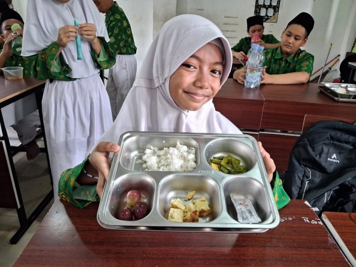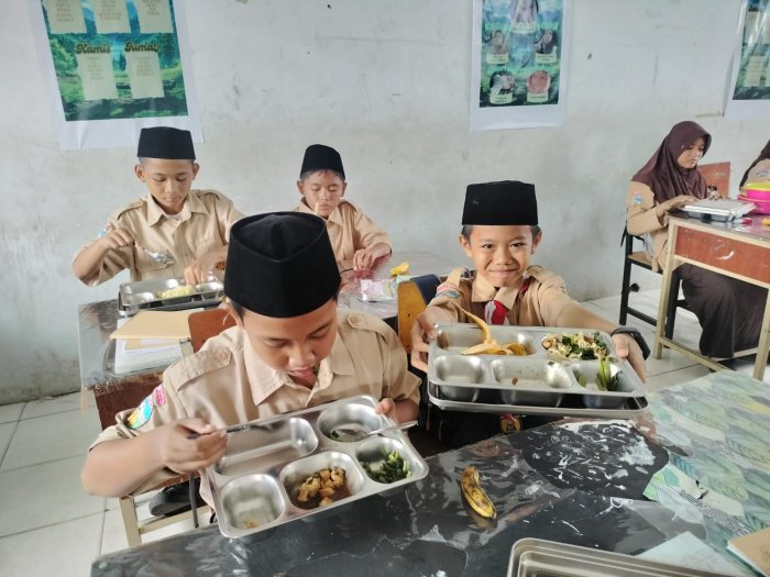 Suasana kelas saat MBG berlangsung terasa hangat dan tertib, dengan siswa yang saling berbagi dan menikmati makanan bersama. Guru pendamping turut hadir mendampingi, memastikan setiap siswa mendapatkan porsi yang cukup dan suasana makan tetap nyaman. Kegiatan ini menjadi momen pembiasaan hidup sehat sekaligus memperkuat rasa kebersamaan antar siswa.