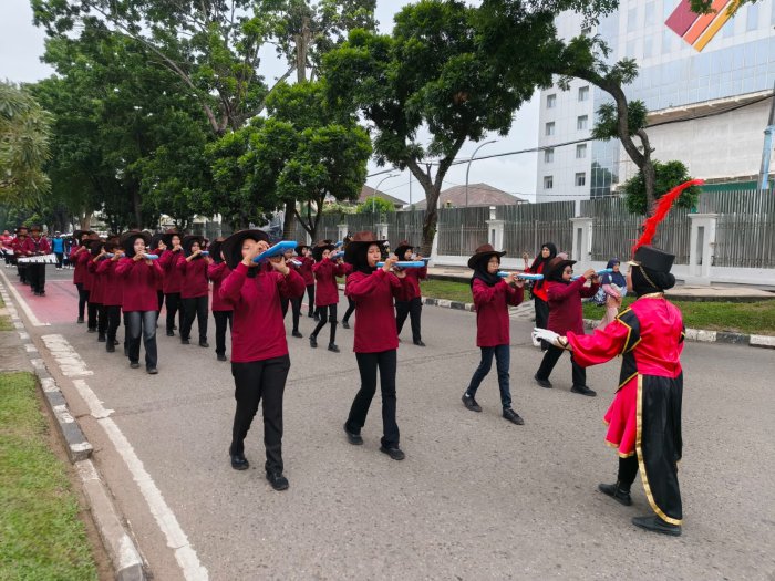 Kota Jambi (MTsN 2 Kota Jambi) — Pagi ini, MTsN 2 Kota Jambi kembali menunjukkan semangat dan kekompakannya dalam ajang bergengsi Aksioma 2025. Tim drumband dan pramuka madrasah tampil sebagai kontingen pembuka dalam kegiatan pawai yang dimulai dari Kantor Wilayah Kementerian Agama Provinsi Jambi dan berakhir di kompleks UIN STS Jambi, Telanaipura. Dengan nomor urut 1, kedua tim membawa nama madrasah dengan penuh semangat dan kebanggaan.