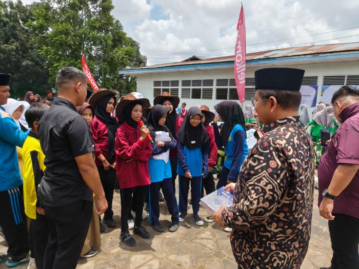 Kota Jambi (MTsN 2 Kota Jambi) — Momen istimewa terjadi dalam rangkaian pawai pembukaan Aksioma ke-2 tingkat MTs se-Kota Jambi, saat salah satu peserta dari MTsN 2 Kota Jambi, Yumna Hasna, berhasil menunjukkan kemampuan hafalan Al-Qur’an di hadapan Bapak Walikota Jambi, H. Maulana. Dalam sesi interaktif di tengah pawai, Yumna diminta melanjutkan ayat dari surah Al-Qariah dan berhasil menyelesaikan murajaah dengan lancar meskipun sempat merasa grogi.