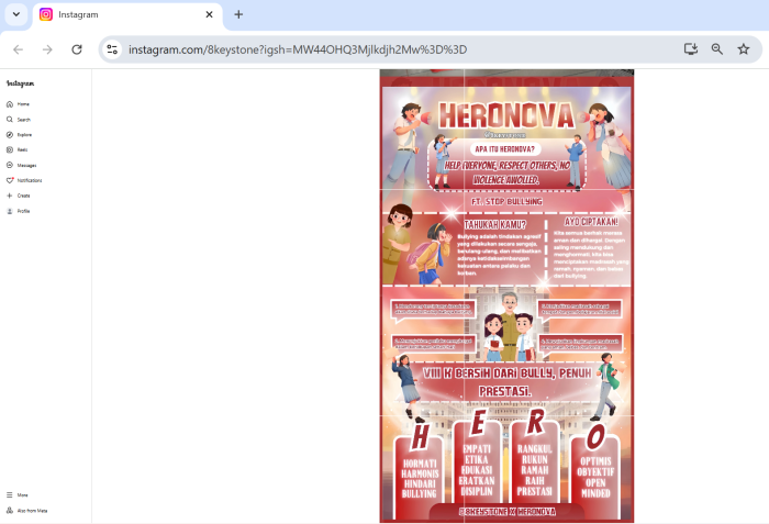 📌 Kelas 8K menghadirkan kampanye HERONOVA (Help Everyone, Respect Others, No Violence Allowed), berisi ajakan untuk menciptakan madrasah yang aman, nyaman, dan bebas dari kekerasan.