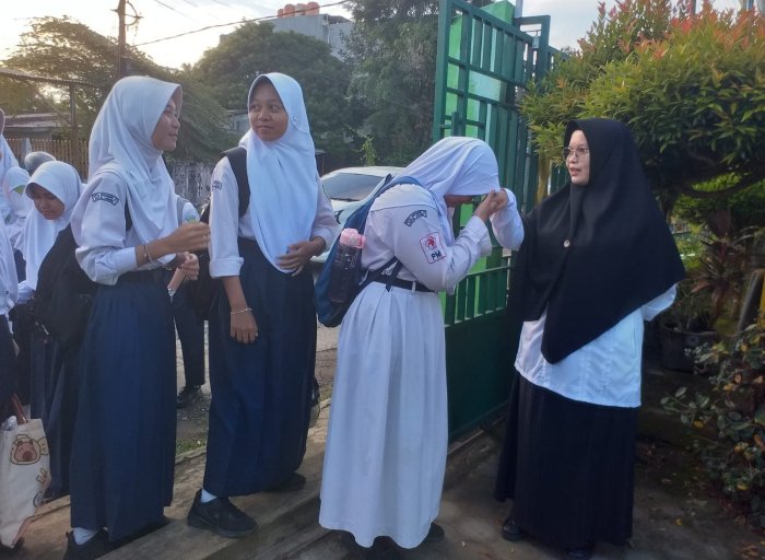 Kota Jambi (MTsN 2) - Senin pagi (22/9/2025) menjadi awal minggu yang penuh semangat di MTsN 2 Kota Jambi. Guru-guru menyapa siswa sejak pagi, mengajak mereka memulai hari dengan semangat dan pikiran yang jernih. Sambutan pagi ini menjadi momen yang sederhana namun berarti, karena mampu membangun kedekatan antara guru dan siswa. Dengan senyum dan sapaan ramah, guru-guru memberi semangat agar siswa memulai hari dengan hati yang gembira dan siap mengikuti pelajaran. Momen sapa pagi ini menjadi pengingat bahwa setiap hari adalah kesempatan baru untuk berbuat baik, belajar lebih giat, dan berprestasi.