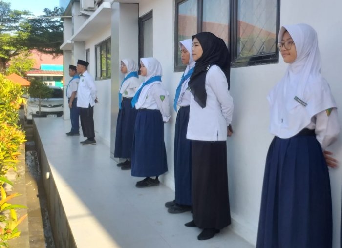 Kota Jambi (MTsN 2) - Upacara bendera pada Senin (22/9/2025) di MTsN 2 Kota Jambi berlangsung dengan tertib berkat partisipasi aktif mahasiswa Praktik Lapangan Persekolahan (PLP) dan tenaga kependidikan. Mereka memastikan siswa berbaris rapi, dan ikut menjaga ketenangan selama upacara berlangsung.