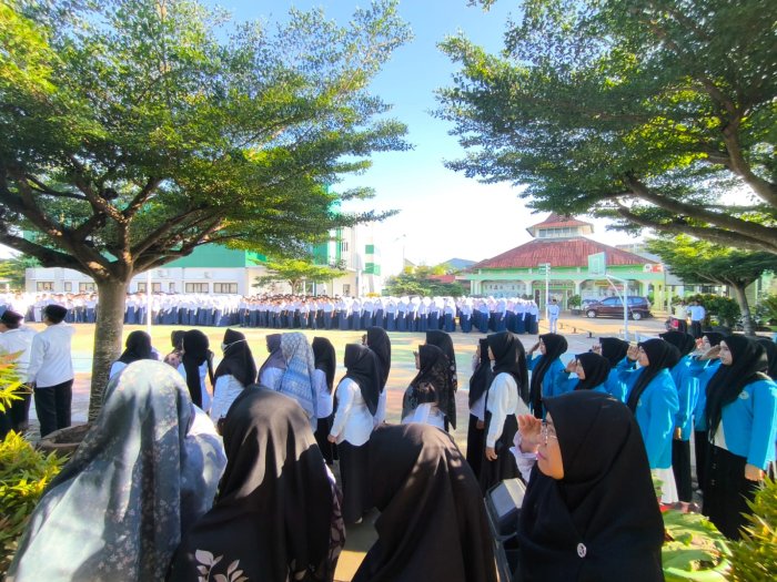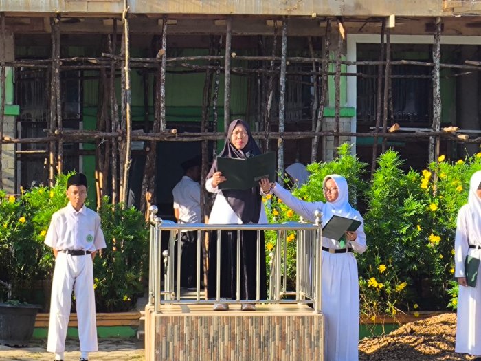 Kota Jambi (MTsN 2 Kota Jambi) — Upacara bendera yang dilaksanakan pagi ini berlangsung khidmat dan penuh semangat di lapangan utama MTsN 2 Kota Jambi. Petugas upacara berasal dari kelas 9C yang tampil percaya diri dan disiplin dalam menjalankan tugasnya. Seluruh rangkaian upacara berjalan lancar, mulai dari pengibaran bendera hingga pembacaan teks Pancasila dan UUD 1945.