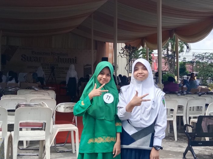 Kota Jambi (MTsN 2 Kota Jambi) — Dua siswi inspiratif dari kelas 9K MTsN 2 Kota Jambi, Salsabila Adiva Putri dan Rodhatul Putri Mukhbita, hari ini tampil dalam ajang Lomba Cipta dan Baca Puisi yang digelar di Museum Siginjei Jambi. Kegiatan ini merupakan bagian dari Pameran Kenduri SWARNABHUMI bertema Pesona Budaya Jalinan Benang Emas, yang menghadirkan semangat pelestarian budaya melalui karya sastra dan ekspresi seni. Kedua siswi tampil mewakili madrasah dengan penuh percaya diri dan penghayatan mendalam.