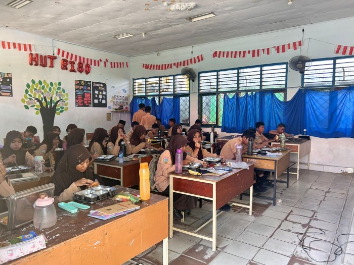 Program MBG yang digagas pemerintah diharapkan menunjukkan dampak positifnya dalam meningkatkan asupan gizi dan semangat belajar para siswa di madrasah. Keceriaan di wajah para siswa kelas 8D, 8I, dan 7C saat menikmati hidangan menjadi bukti nyata manfaat program ini. Menu yang disajikan tidak hanya mengenyangkan tetapi juga telah diperhitungkan kandungan gizinya untuk mendukung aktivitas belajar dan pertumbuhan mereka.