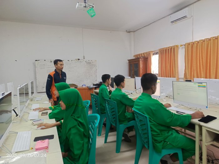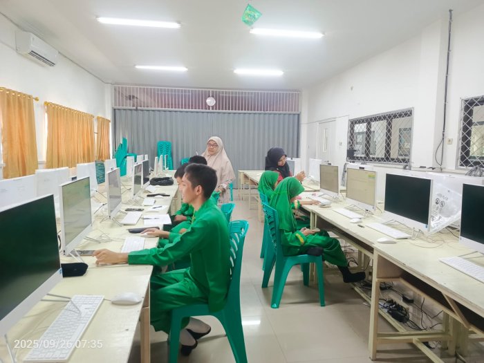 Kota Jambi (MTsN 2) - Pada Jumat, 26 September 2025, lima siswa dari MTsN 2 Kota Jambi mengikuti simulasi Computer Based Test (CBT) Olimpiade Madrasah Indonesia (OMI). Para siswa tersebut berasal dari bidang Matematika, Ilmu Pengetahuan Alam (IPA), dan Ilmu Pengetahuan Sosial (IPS). Simulasi ini dilaksanakan secara daring di ruang laboratorium komputer madrasah mulai pukul 07.30 hingga 08.30 WIB.