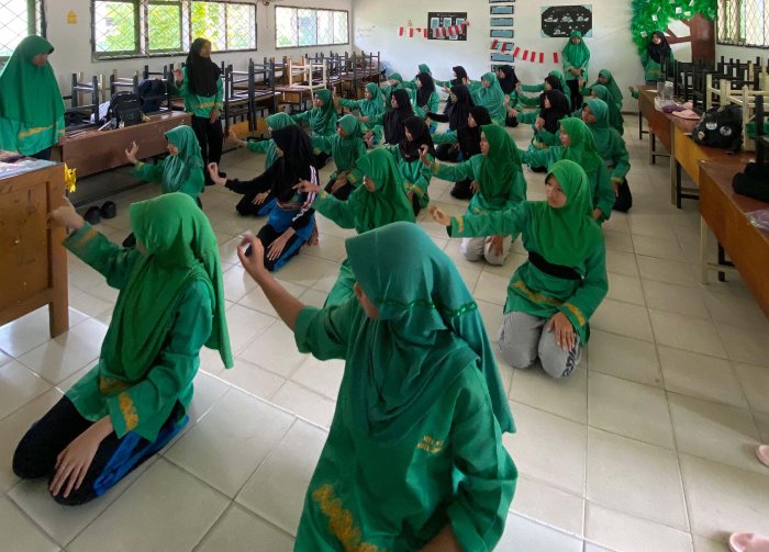 Para siswa tampak antusias mengikuti setiap sesi latihan, mulai dari pemanasan, pengenalan gerakan dasar, hingga praktik berkelompok. Beberapa siswa bahkan sudah menunjukkan kemampuan yang cukup baik dalam menghayati gerakan dan irama musik pengiring.