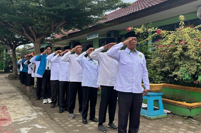 Kota Jambi (MTsN 2) - MTsN 2 Kota Jambi menggelar upacara bendera pada Senin, 29 September 2025, dengan suasana yang khidmat dan tertib dengan petugas upacara dari kelas 9B. Upacara ini diikuti oleh siswa, guru, dan staf madrasah sebagai bagian dari kegiatan rutin yang bertujuan menanamkan nilai-nilai kebangsaan dan kedisiplinan.