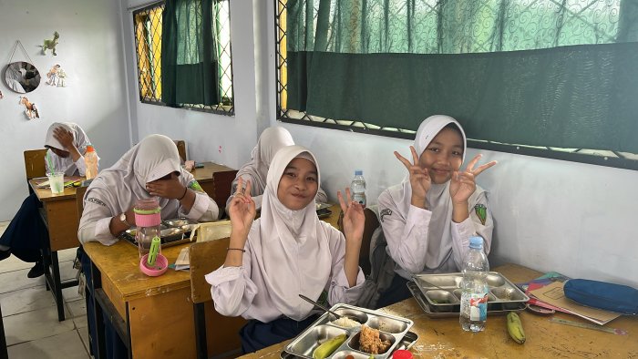 Kegiatan makan bersama ini berlangsung di ruang kelas masing-masing. Suasana yang tercipta sangat hangat dan penuh kebersamaan. Para siswa tampak menikmati hidangan sambil berbincang dan bercanda dengan teman sekelas. Momen ini tidak hanya menjadi waktu makan, tetapi juga kesempatan untuk mempererat hubungan antar siswa.
