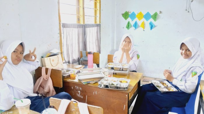 Kota Jambi (MTsN 2) - Pada Selasa, 30 September 2025, suasana hangat kembali terasa di ruang kelas 7E, 8C, 9C, dan 9F MTsN 2 Kota Jambi. Hari ini, program Makan Bergizi Gratis (MBG) kembali dilaksanakan sebagai bagian dari upaya pemerintah untuk mendukung kesehatan serta meningkatkan konsentrasi belajar siswa melalui asupan gizi yang seimbang.