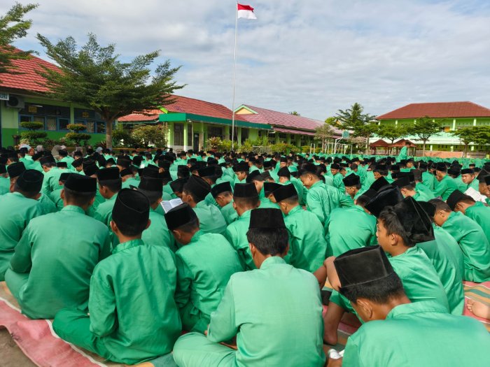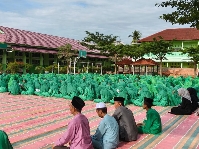 Kota Jambi (MTsN 2) - MTsN 2 Kota Jambi kembali melaksanakan kegiatan Yasinan rutin pada Jumat pagi dengan suasana religius dan penuh kekhidmatan. Kegiatan yang berlangsung di aula utama madrasah ini diawali dengan penampilan grup hadroh siswa yang membawakan shalawat dengan semangat dan irama yang membangkitkan semangat spiritual seluruh peserta.