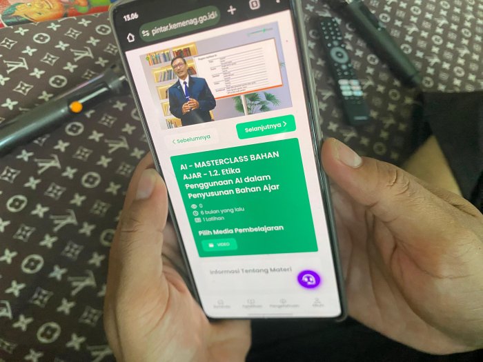 Kota Jambi (MTsN 2) - Dalam semangat transformasi pendidikan madrasah menuju era digital, MTsN 2 Kota Jambi kembali menorehkan langkah progresif melalui partisipasi aktif tenaga pendidiknya dalam pelatihan teknologi pembelajaran. Pada Sabtu (4/10/2025), Wahid Kurniawan, S.Pd, guru MTsN 2 Kota Jambi, mengikuti pelatihan daring bertajuk MasterClass Pembuatan Bahan Ajar Berbasis AI yang diselenggarakan melalui platform resmi Kementerian Agama RI, pintar.kemenag.go.id.