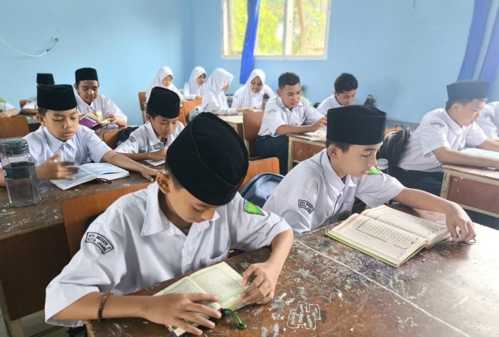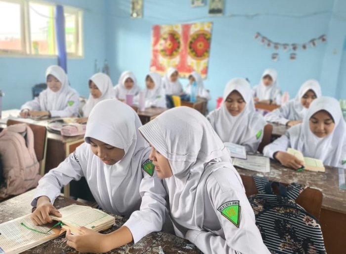 Kota Jambi (MTsN 2) - MTsN 2 Kota Jambi terus berupaya menanamkan nilai-nilai religius dalam kegiatan belajar sehari-hari. Pada Selasa, 7 Oktober 2025, suasana kelas 7C tampak penuh kekhusyukan saat para siswa melaksanakan kegiatan membaca Al-Qur’an sebelum memulai pelajaran. Kegiatan ini dipandu oleh Hasnaida Azmiatik, mahasiswa Pengenalan Lapangan Persekolahan (PLP) dari UIN Sulthan Thaha Saifuddin Jambi.Kebiasaan membaca Al-Qur’an sebelum pelajaran ini telah menjadi budaya positif di lingkungan MTsN 2 Kota Jambi, yang secara rutin dilakukan untuk membiasakan siswa dekat dengan kitab suci.