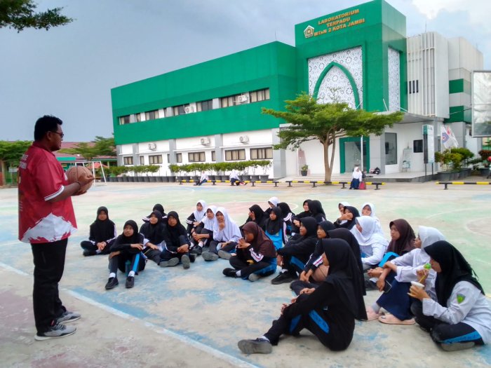 Kota Jambi (MTsN 2) - Ekstrakurikuler basket putri di MTsN 2 Kota Jambi kembali menunjukkan semangat berolahraga melalui latihan rutin yang diadakan setiap pekan. Pada Selasa, 7 Oktober 2025, tim basket putri melaksanakan sesi latihan dengan fokus pada teknik rebound. Latihan ini dipandu langsung oleh guru olahraga, Ade Saputra, S.Pd.